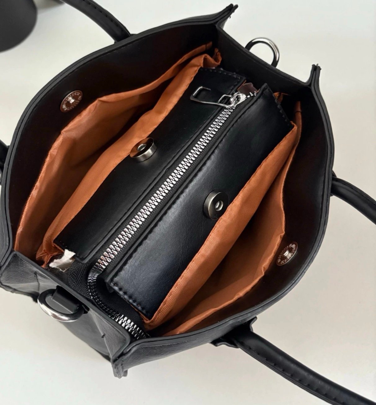 Correa larga regulable desmontable. Bolsillo principal con cierre, dentro dos bolsillos pequeños y un tercero con cierre. Dos divisiones aparte con cierre botón con imán. MEDIDAS: 26x20x10 aprox.